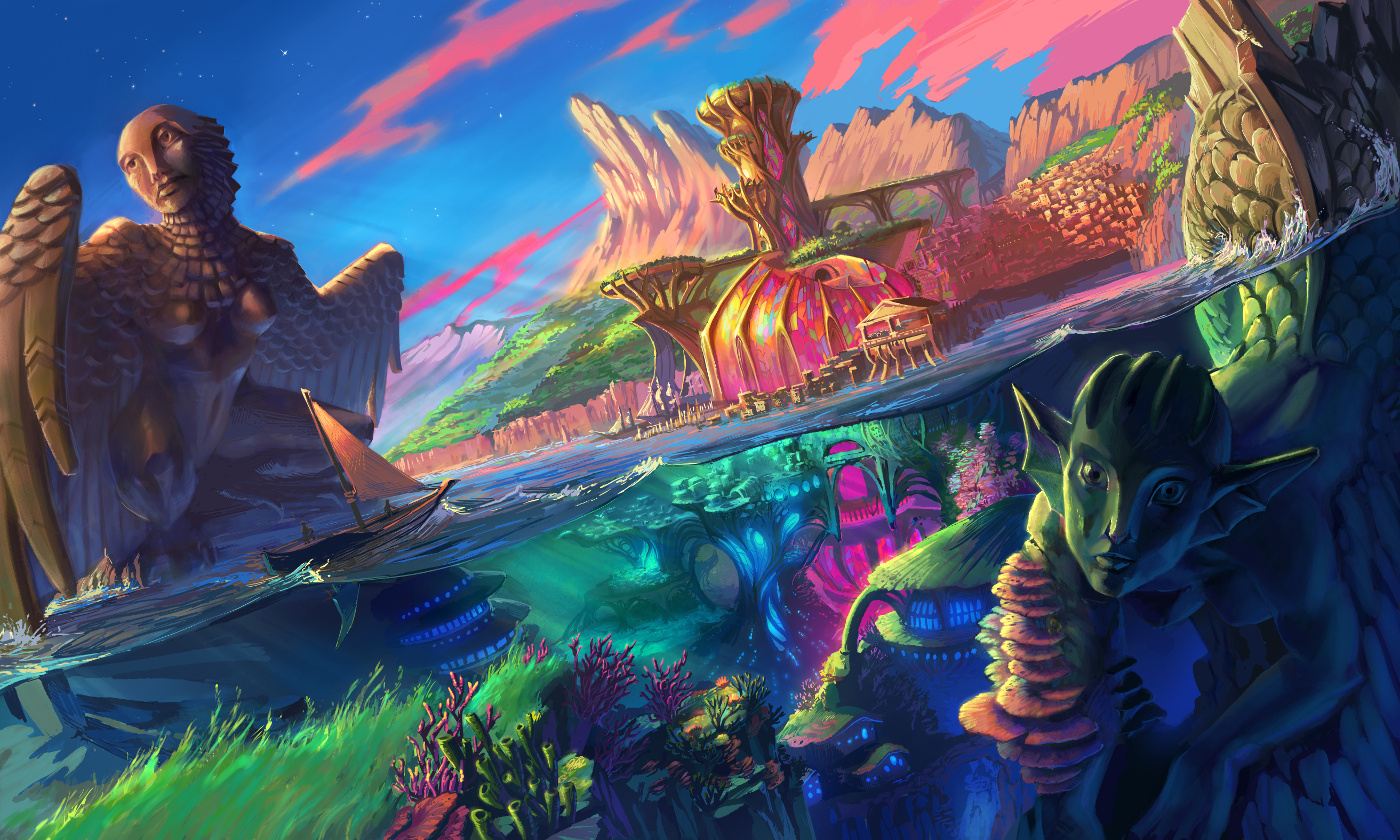 A four week exploration in 2021 of Eunaria, home of Sirens and Harpies, who have bonded by their love of music. The Jeweled Opera house is truly the heart of the city, surrounded by a vibrant community of creative trades, where both tides and cliffs collide.